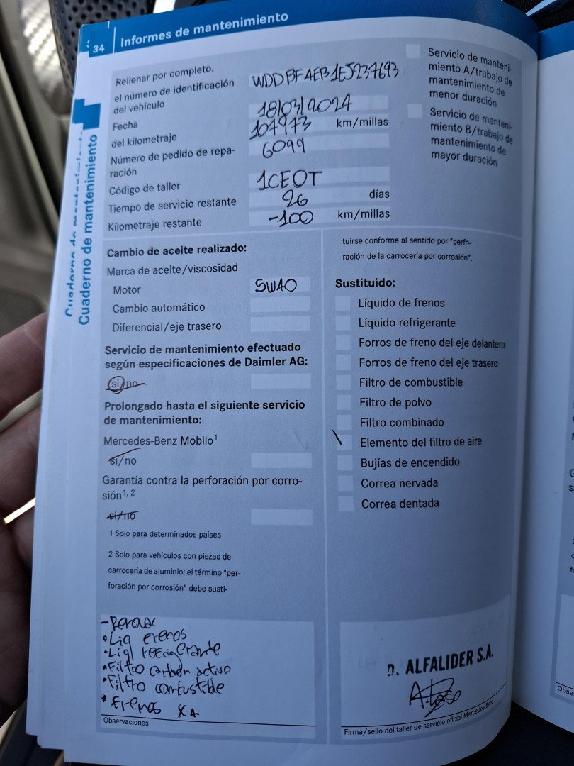 Realizar servicio de mantenimiento completo (restan 4.000km según sticker de mantenimiento).